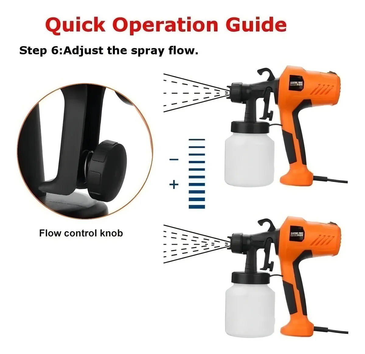 Su boquilla ajustable permite aplicar pintura en modo horizontal, vertical o diagonal, logrando un acabado uniforme y rápido.